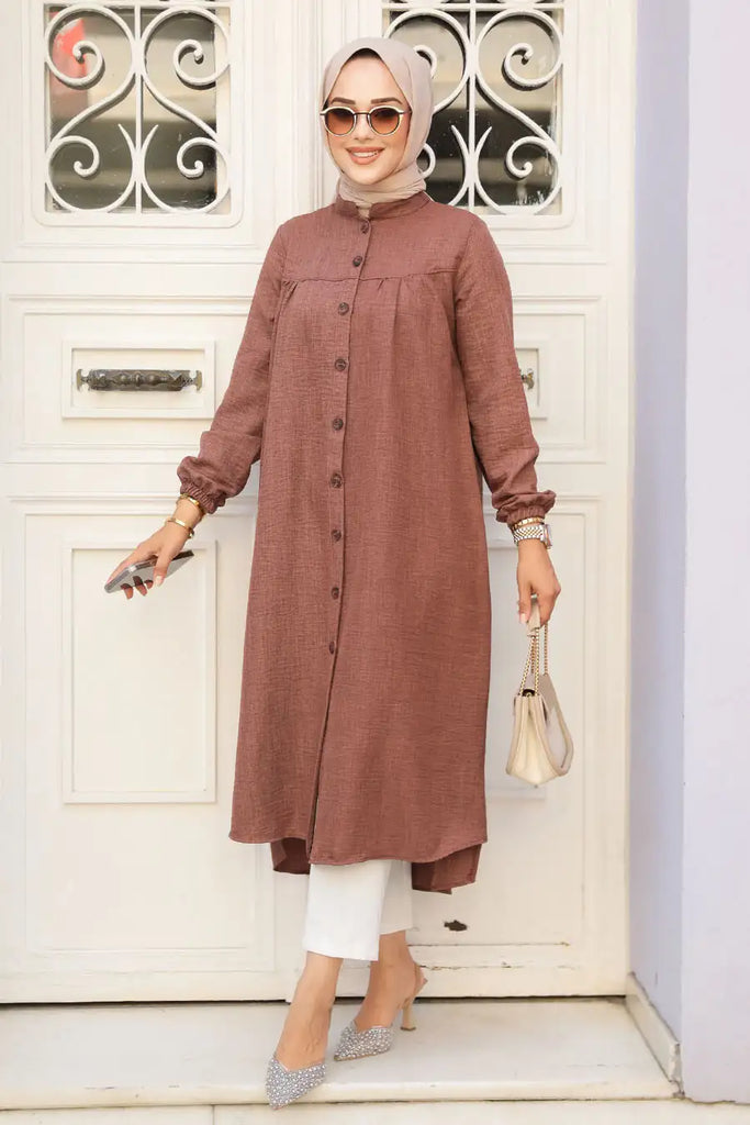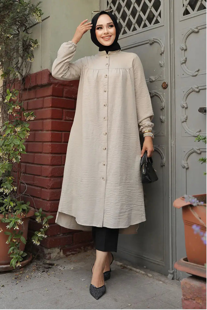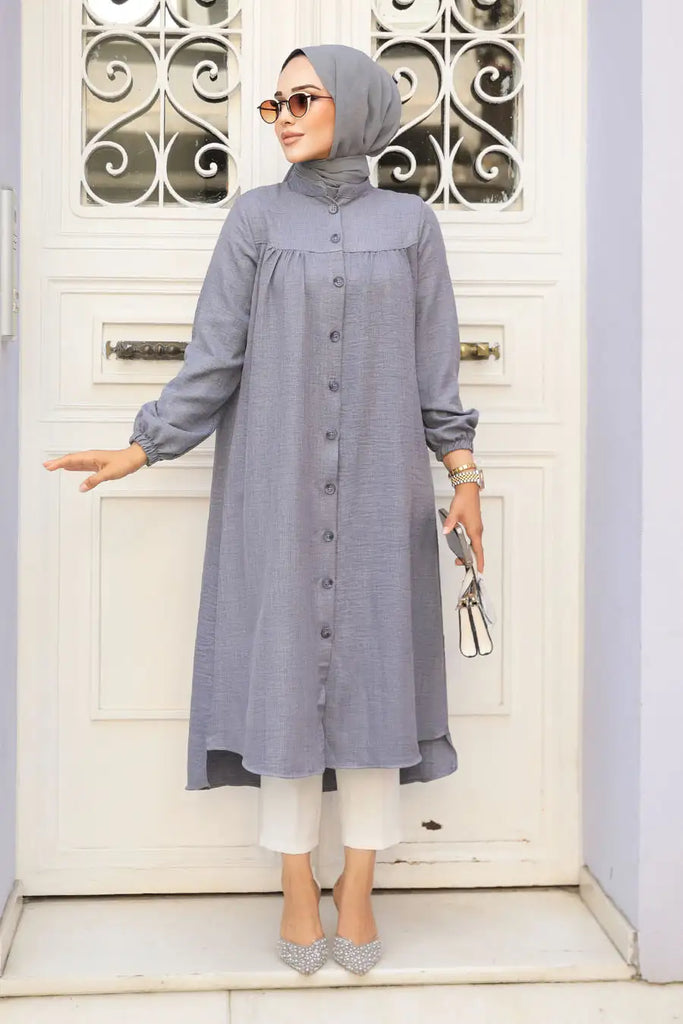 Step into style with the Alice A-Line Tunic, a versatile and elegant piece that offers both comfort and sophistication. This A-Line Tunic is crafted from a premium linen-cotton blend, giving it a soft yet structured feel that makes it perfect for everyday wear. Designed with a mid-calf maxi length, the Alice A-Line Tunic features an open front with classic button detailing and cinched cuffs for added definition and style. The flowing A-line silhouette ensures a flattering fit for all body types, while the tunic’s breathable fabric makes it ideal for all seasons.