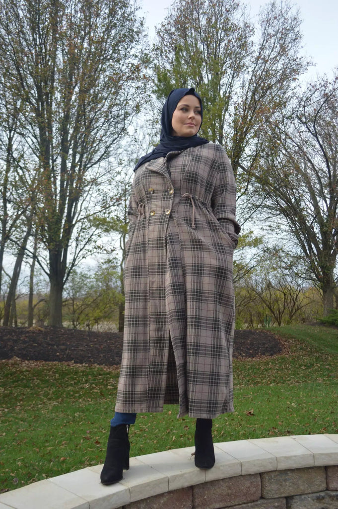 Elevate your wardrobe with our Brown Plaid Maxi Cardigan, featuring rich brown, raspberry, and cream tones for a stylish spring/fall look. This A-line custom design cardigan is adorned with four large buttons for closure and hidden side pockets. Crafted from a cotton and wool mix, it offers extra warmth and ultimate comfort. Enjoy the convenience of no ironing, as well as resistance to pilling and shrinkage.
