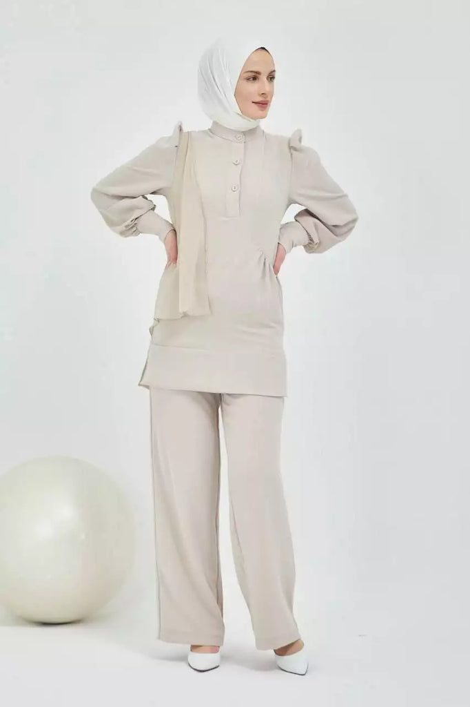 Cream Crepe Formal Suit: Elegant Two-Piece Ensemble