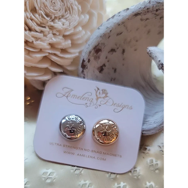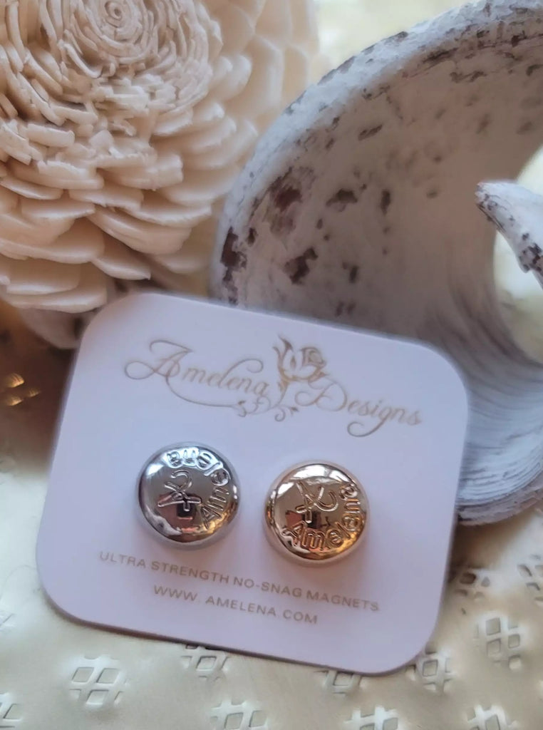 Elevate your accessory game with Lux Magnetic Pins in Silver & Gold. Crafted for durability and style, these pins feature a super-strong hold and non-fading colors, ensuring a reliable and elegant accent to your outfits. Say goodbye to snags and lost pins with these beautifully engraved accessories. Perfect for securing hijabs, scarves, shirts, dresses, cardigans, and more, these magnetic pins offer endless styling possibilities and a flawless hold every time.